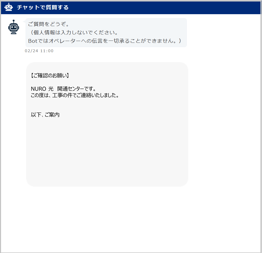 工事に関するNUROからの連絡について