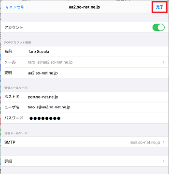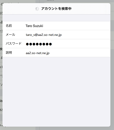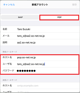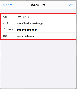 - 「説明」: [メールアドレス] 例)taro_s@aa2.so-net.ne.jp