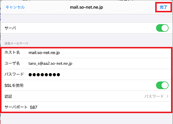 - 「メール」: [メールアドレス] 例)taro_s@aa2.so-net.ne.jp