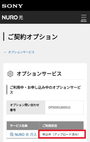 「オプションサービス」より「NURO ガス」を選択いただくと、お申込みいただけます。