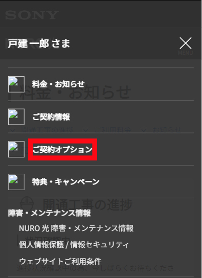 マイページから「MENU」、「ご契約オプション」の順で選択してください。